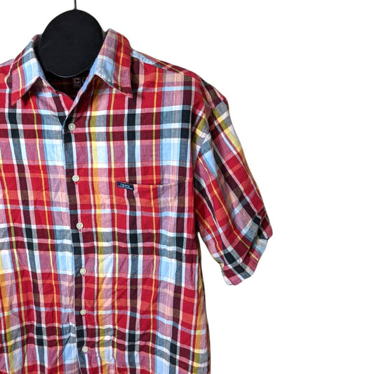 CHAPS RALPH LAUREN Red Blue Plaid Button Down Short Sleeve Shirt Large