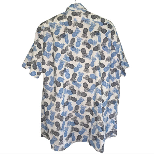 SONOMA Blue Black Pineapple Hawaiian Style Short Sleeve Button Down Shirt XXL