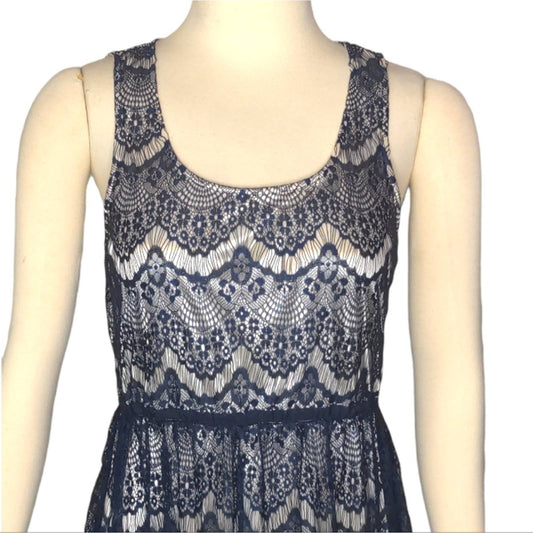 FOREVER 21 Navy Blue Lace Party Dress with Tan Lining Large