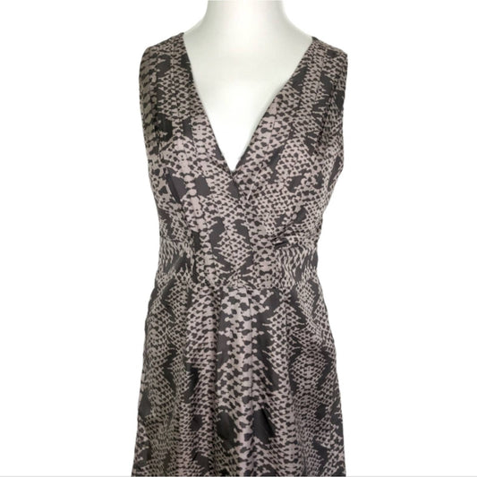 BANANA REPUBLIC Tan Brown Snakeskin Print Silk Faux Dress Size 14