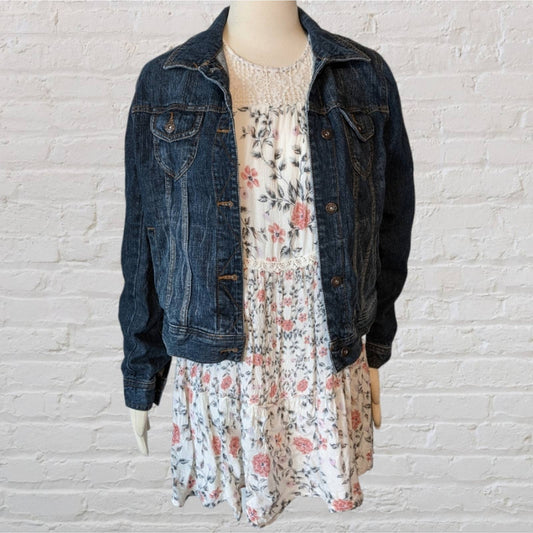 BLUE RAIN Cream Floral Tiered Dress with Lace Shoulder Medium