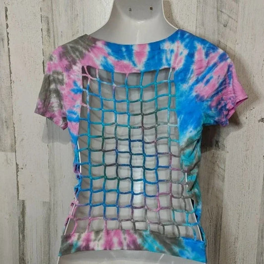 CHASER Pink Blue Tie-dye Open Back Lattice Small