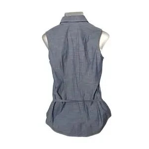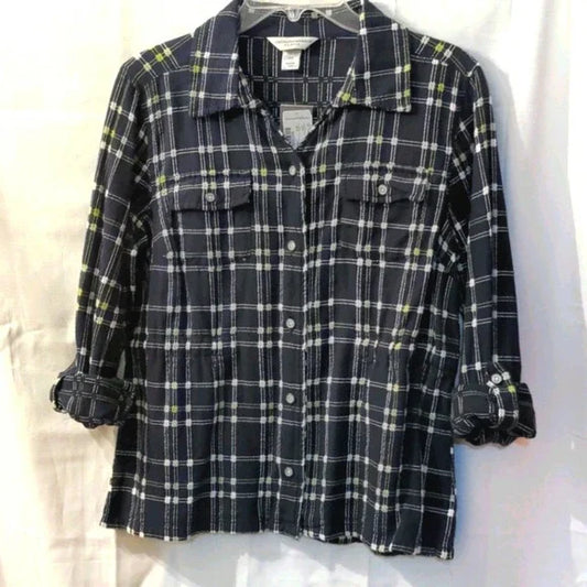 CHRISTOPHER & BANKS Navy Plaid Button Up Top Petite Med