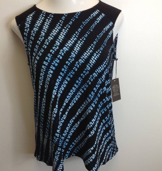 VINCE CAMUTO Tropical Rain Black Sleeveless Top Small