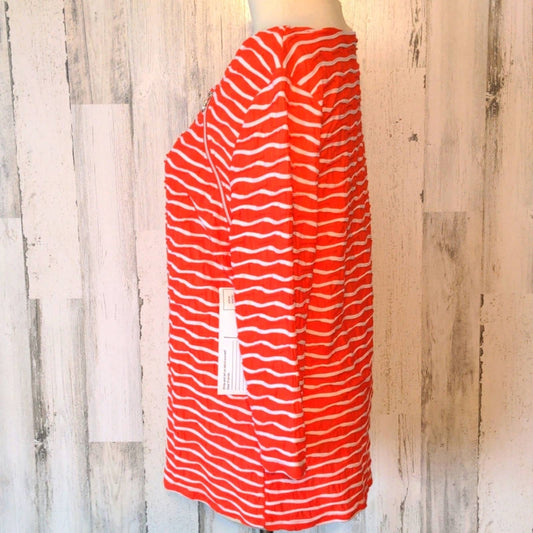 ONQUE CASUAL Orange Striped Textured Zipper Top Large NEW