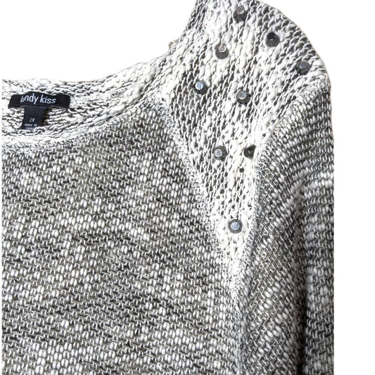 KANDY KISS Black White Studded Space Dye Style Sweater 2X NEW