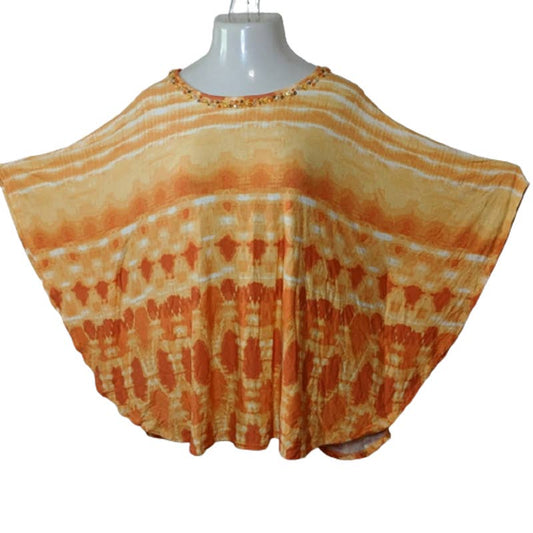 RUBY RD Orange Tie Dye Beaded Knit Dolman Top 1X