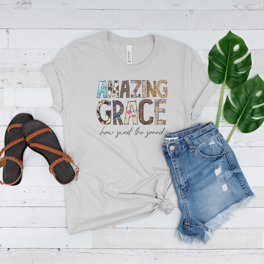 Amazing Grace Mixed Media Look Unisex Jersey Short Sleeve Tee S-3XL