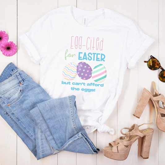 Egg-Cited for Easter Funny Expensive Eggs Unisex Jersey Short Sleeve Tee Small-3XL