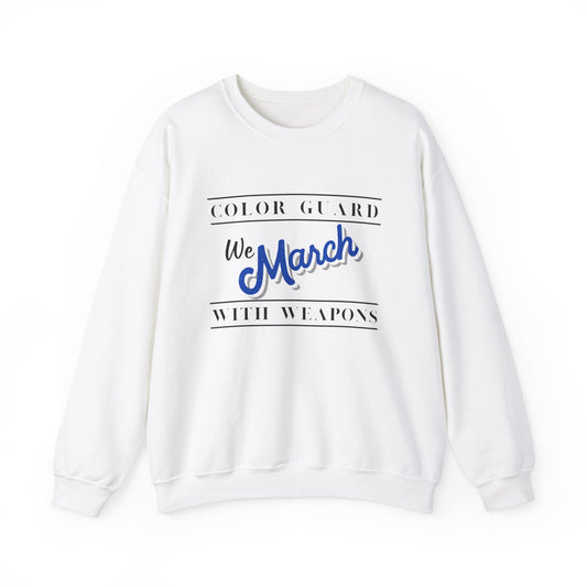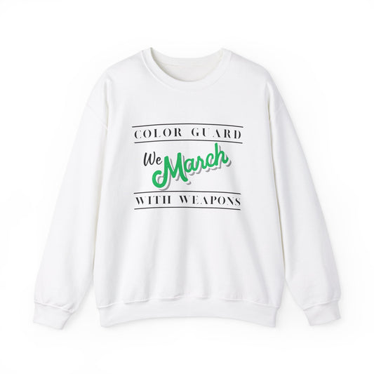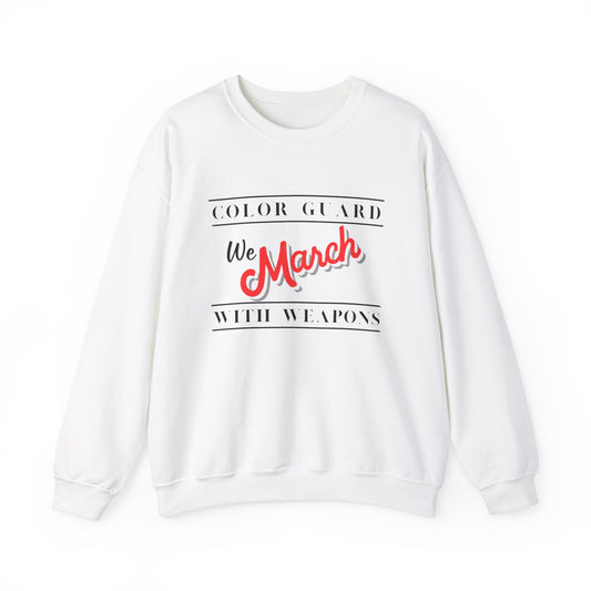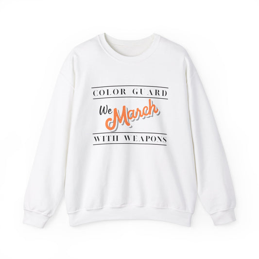 Marching Band Color Guard We March with Weapons Flag, Rifle, Saber Unisex Heavy Crewneck Sweatshirt