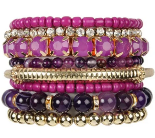Simone Purple and Goldtone Sparkle Stretchy Stacking Bracelets 8 Pieces