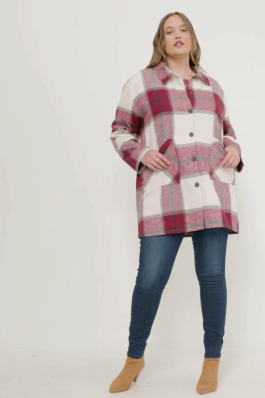 Mandy Plus Burgundy Plaid Shacket with Front Pockets 1X-3X