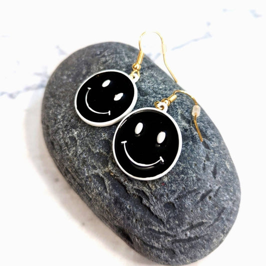 HAPPY FACE Black and White Hook Earrings Smile Have a Nice Day