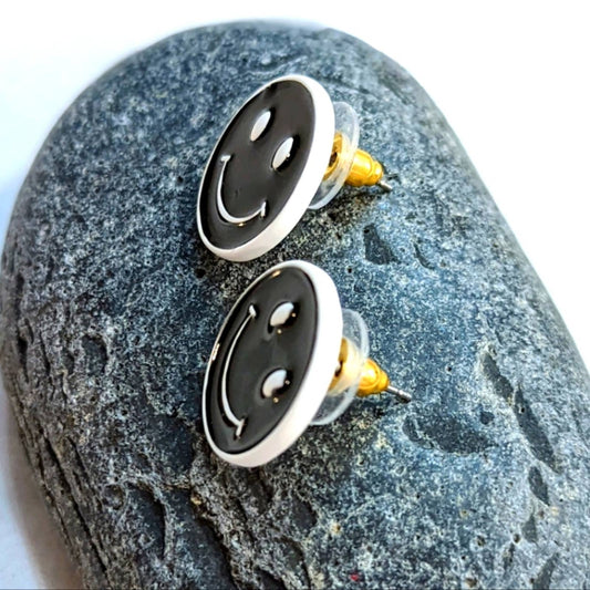 HAPPY FACE Black and White Post Earrings Smile Have a Nice Day