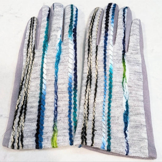 Sassy Gray Yarn Striped Tech Touchscreen Gloves