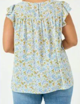Gina Plus Blue Floral Flutter Sleeve Smocked Top 1X-3X