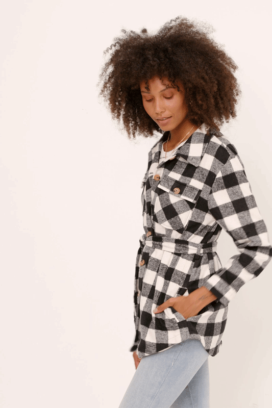Maylee Misses Black Check Belted Long Shacket S-L