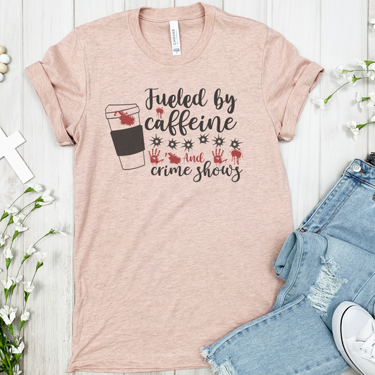 Fueled by Caffeine and Crime Shows Unisex Jersey Short Sleeve Tee S-3XL