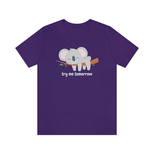 Try Me Tomorrow Lazy Sleeping Koala Unisex Jersey Short Sleeve Tee S-3XL