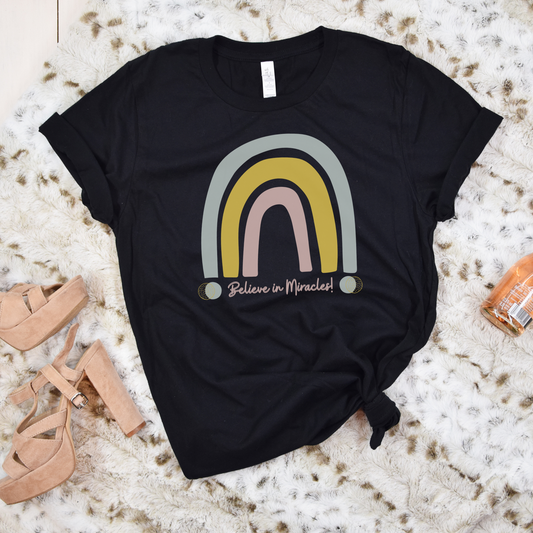 Believe in Miracles Trendy Boho Rainbow Unisex Jersey Short Sleeve Tee Small-3XL