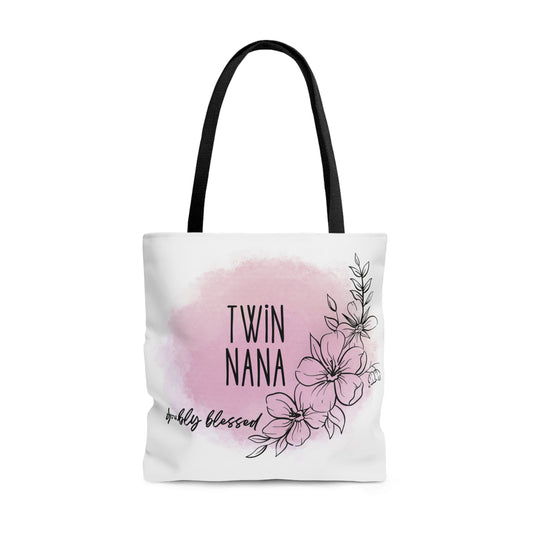 Twin Nana Doubly Blessed Pink Watercolor Large Tote Bag