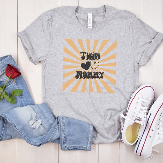 Retro Style Twin Mommy Orange Burst Unisex Jersey Short Sleeve Tee Small-3XL