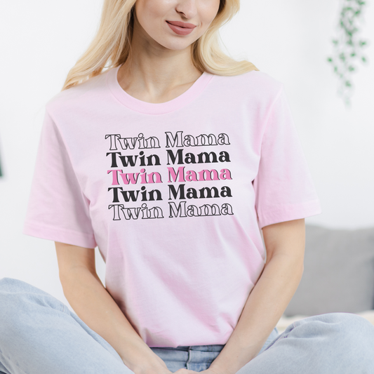Twin Mama Pink Retro Style Unisex Jersey Short Sleeve Tee Small-3XL