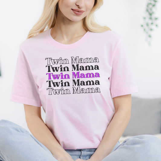 Twin Mama Purple Retro Style Unisex Jersey Short Sleeve Tee Small-3XL