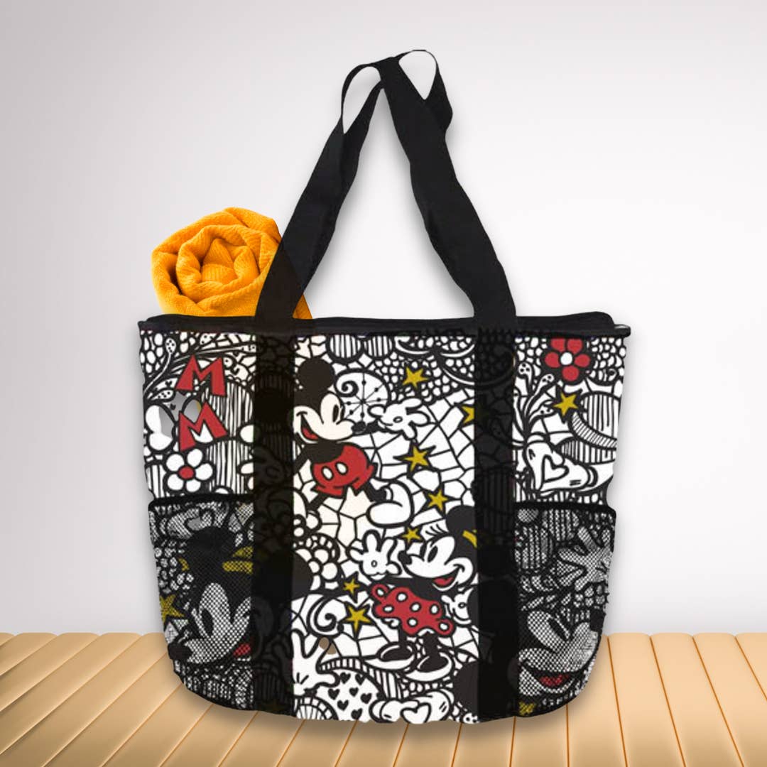DISNEY Mickey Minnie Mouse Large Zip Top Tote with Mesh Side Pockets