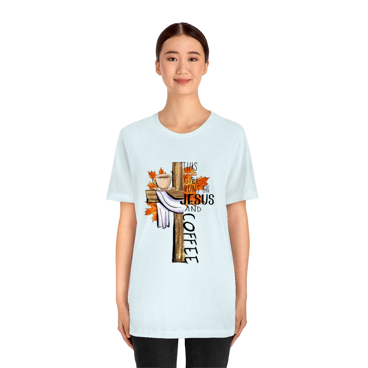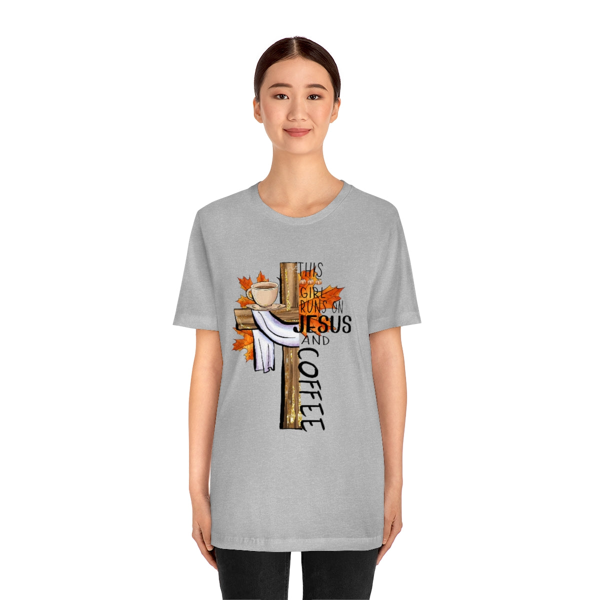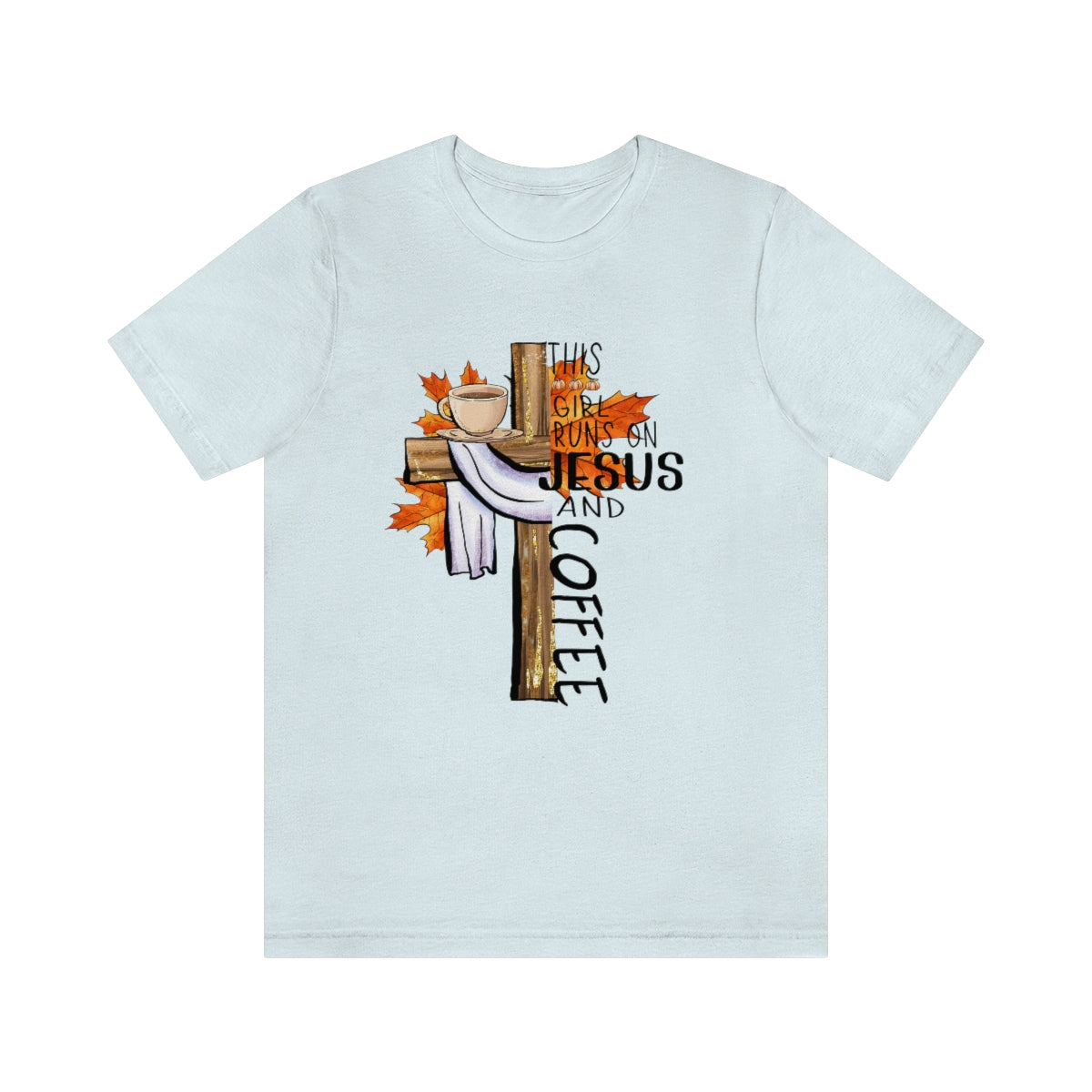 This Girl Runs on Jesus and Coffee Fall Unisex Jersey Short Sleeve Tee S-3XL