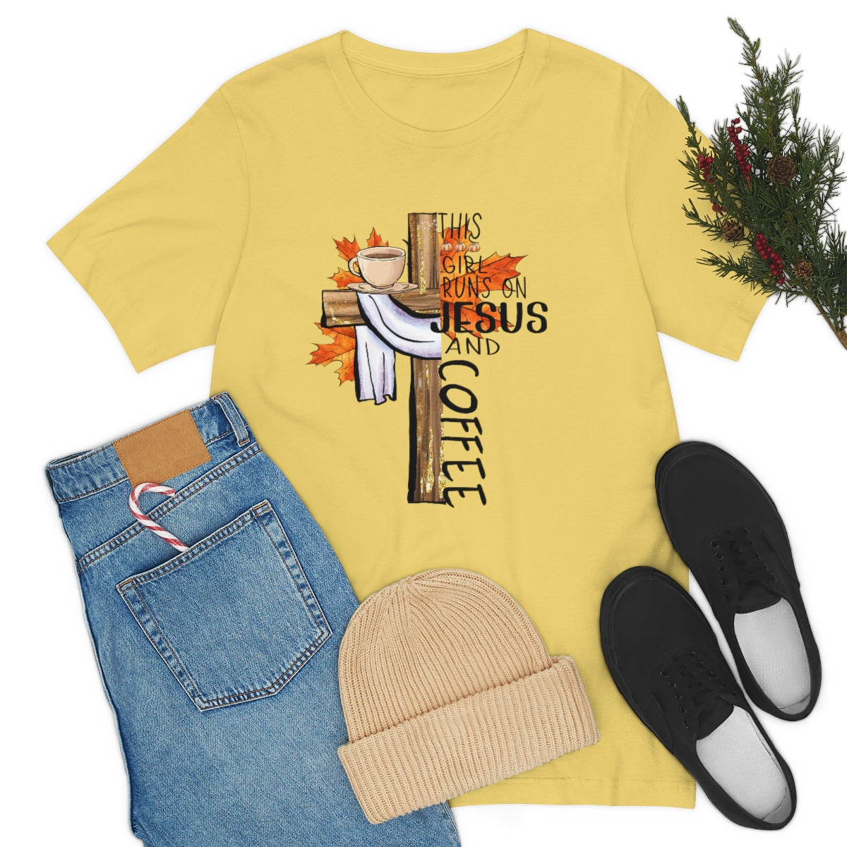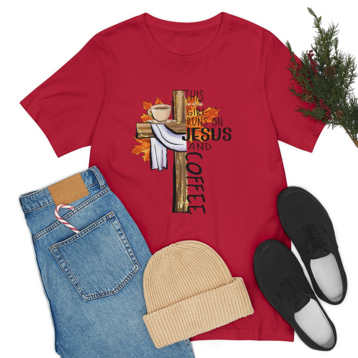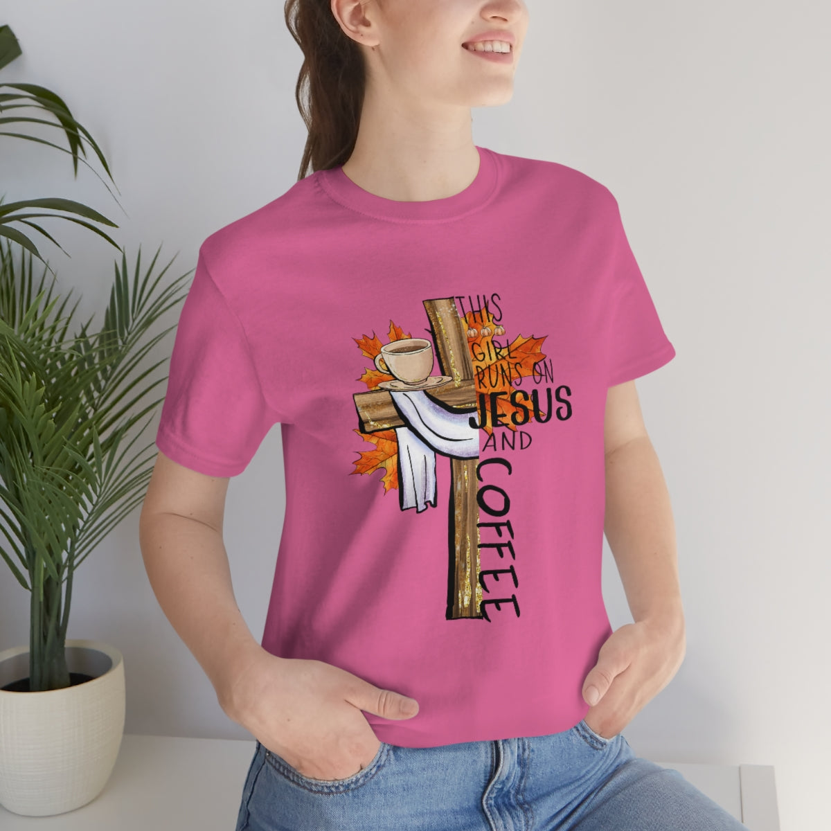 This Girl Runs on Jesus and Coffee Fall Unisex Jersey Short Sleeve Tee S-3XL