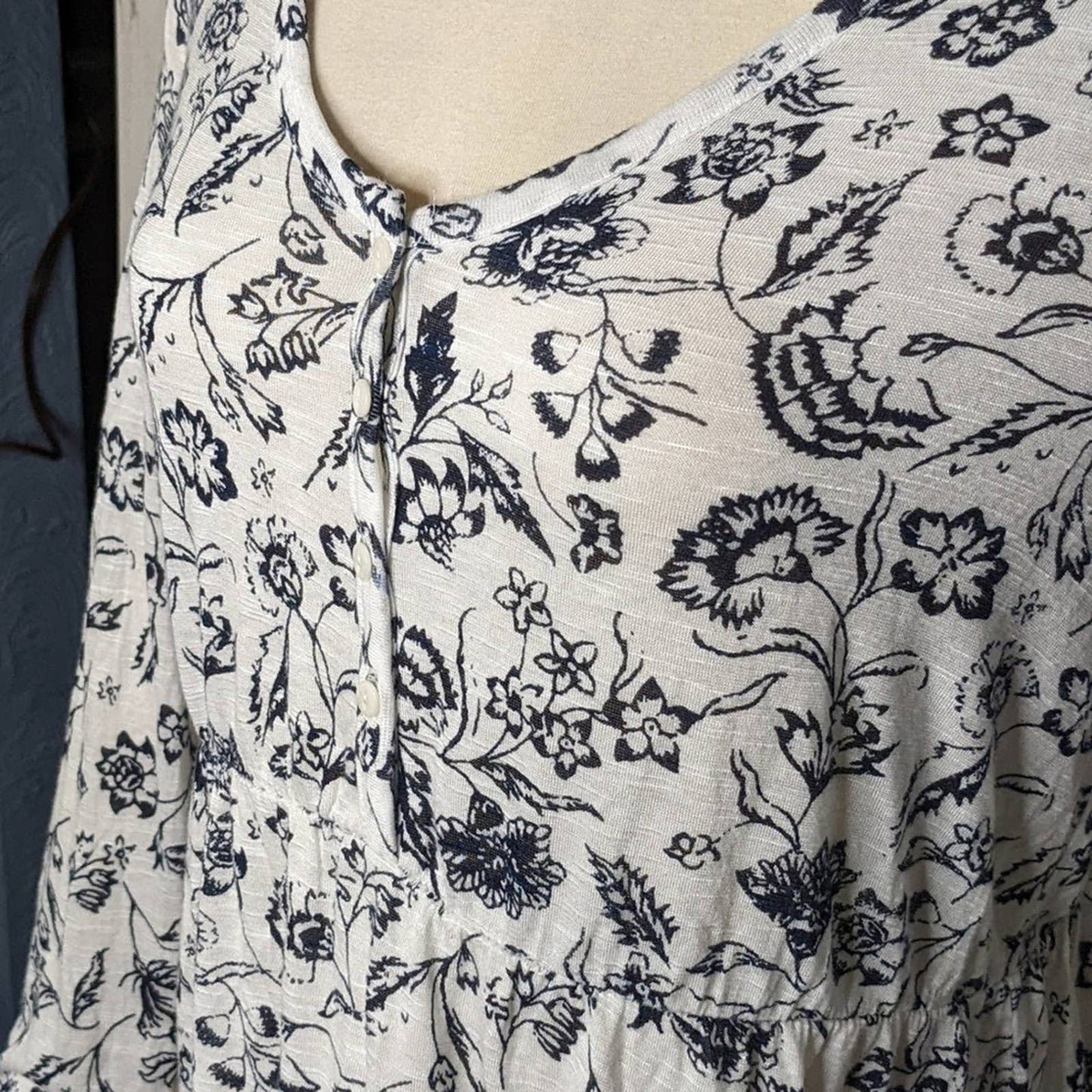 LUCKY BRAND White Navy Floral Button V-Neck Top Cinched Waist XS