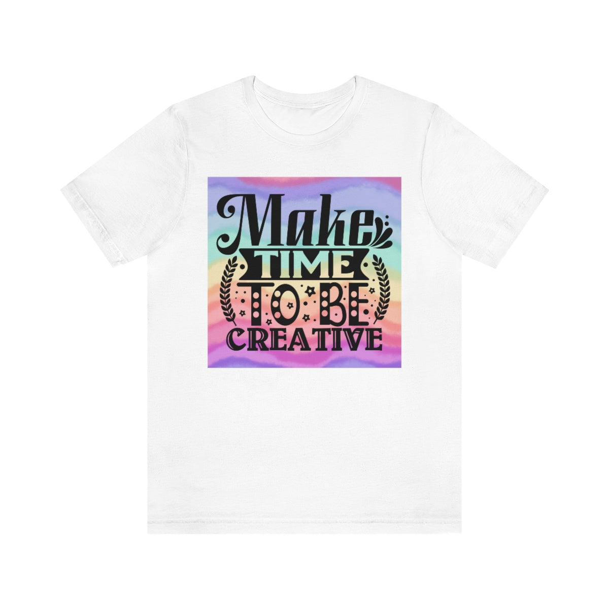 Make Time to be Creative is a reminder to do something you love! Self-care is so important, especially these days, and crafting is the perfect relaxing hobby! Whether you're in your craft room or at a crop with your besties, this shirt will be the star of the show! Beautiful rainbow background with black lettering.